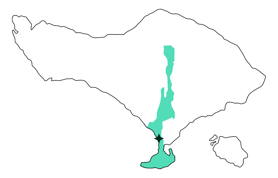 Located in the southern part of the island, Badung stretches from the Bukit peninsula in the south to Mount Catur in the north. At places in between, it is barely 2 kilometres wide – connecting the peninsula to Bali mainland and at Petang village,where Badung is just a mountain ridge between two river valleys.